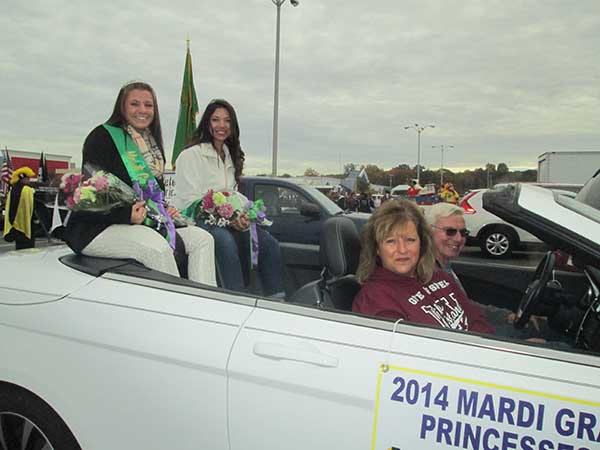 Mardi Gras Princesses Brittney Croteau and Carla Faria (driven by 2012 Queen Jackie Boudreau and her husband Rene) |